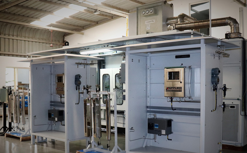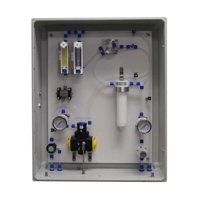 该系统用于监测液氯产品流中 0–100% Cl2 及 0–200 ppm H2O,主要特点包括: